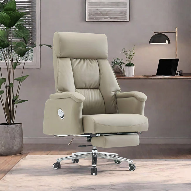 Beige Multi-Functional Adjustable Office Chair with Footrest BGY-2078 This sleek beige office chair blends comfort and functionality. Its ergonomic backrest and armrests hug your curves for all-day comfort, while the adjustable backrest and pull-out footrest let you switch...