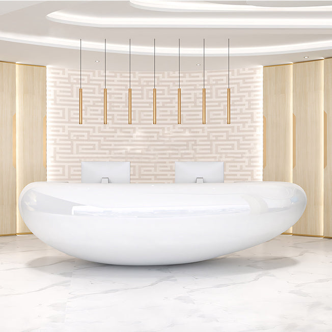 Elegant Minimalist Fully Assembled Reception Desk with LED Lights JDT-2013 The White Lacquered Arc-shaped Counter is a masterpiece of elegance and functionality. Its distinct arc shape gives a soft, inviting look and uniqueness to your reception area. Crafted with high-quality...