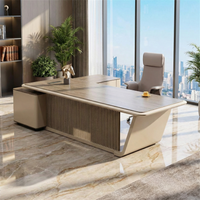 | This executive desk features integrated LED ambient lighting and a storage cabinet. LED strips outline the desktop, casting soft, non - glare light for an elegant office vibe. The cabinet, with smart partitions, neatly stores documents and supplies. Blending style and utility, it suits executive/manager offices, boosting both aesthetics and efficiency. | |