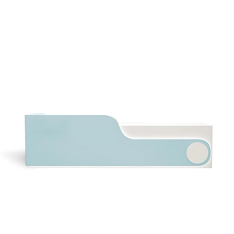 | Boasting a plethora of color options, it effortlessly coordinates with any interior scheme, adding a splash of personality to your space. This reception desk is not just a pretty face; it's highly functional, providing an ideal spot for greeting customers and handling transactions. Its sleek design maximizes space efficiency without sacrificing style. | |