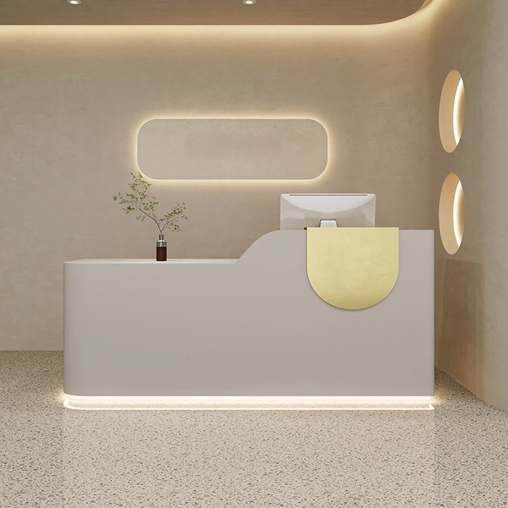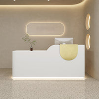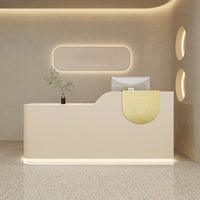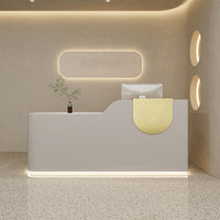 This reception desk is minimalist creative. Its unique curved design and semi-circular decorative elements on the countertop add highlights. It suits various places like clothing stores and beauty salons.