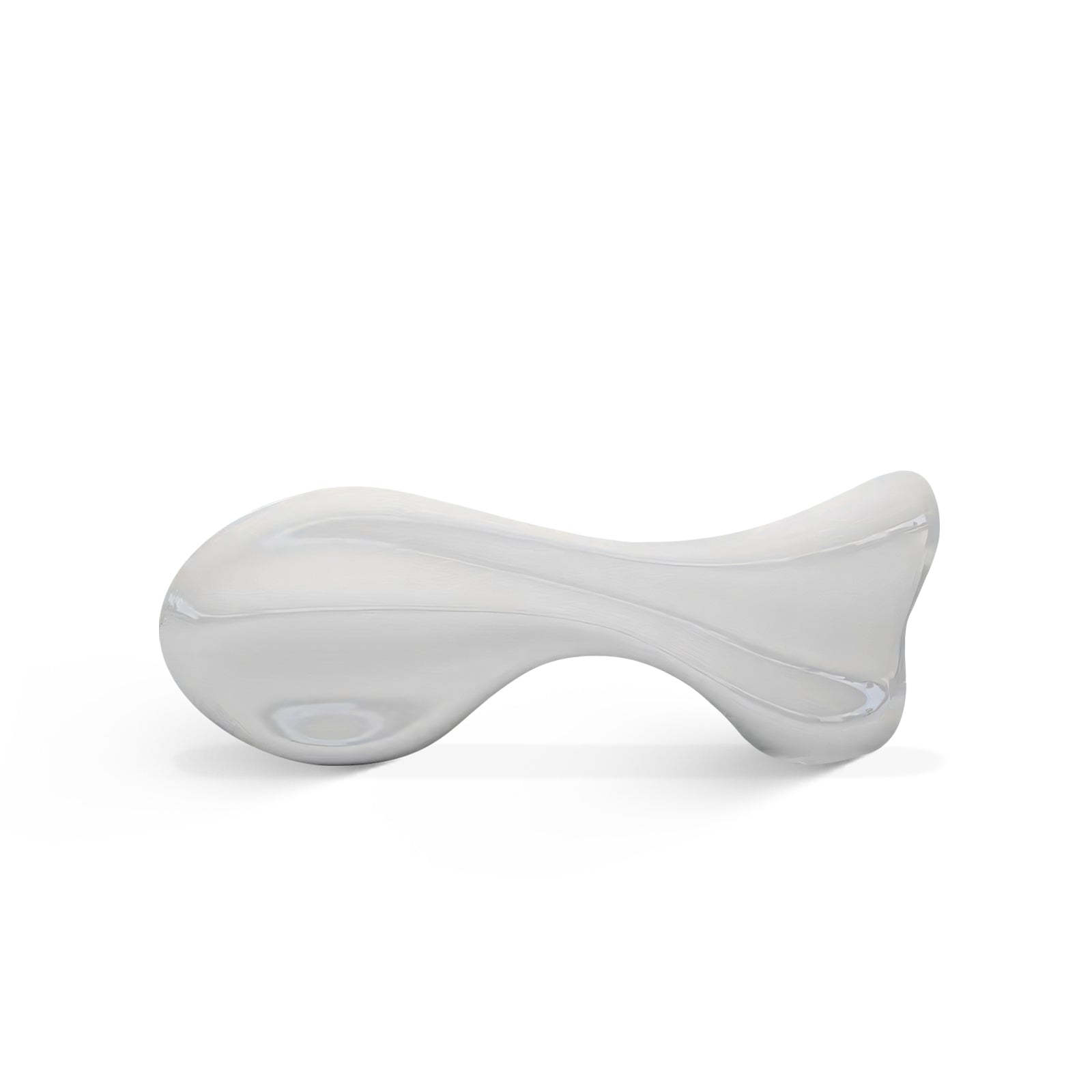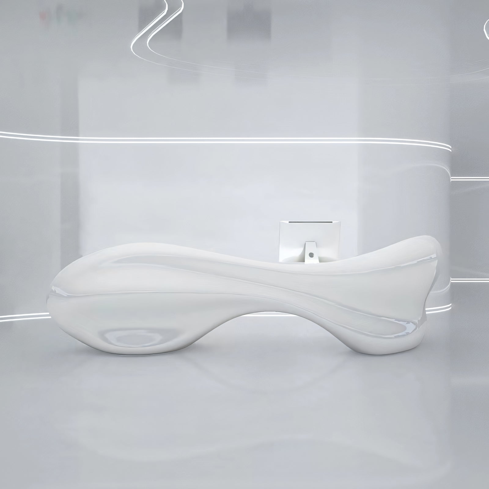 This is a highly modern irregular-shaped painted reception desk. It has the smooth and flexible lines, just like an artistic sculpture. The whole desk is painted and has a smooth and glossy surface.