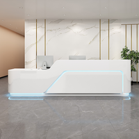 This reception desk is made of high-gloss paint material, which has a modern feel. The smooth lines and the lights add a sense of technology, making it suitable for a variety of scenes.