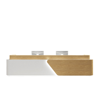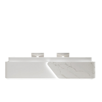 This reception desk is creative and minimalist. The overall shape is elegant, and the design lines are smooth. There is the wooden decorative strip above the desktop, which adds a warm and special feeling.