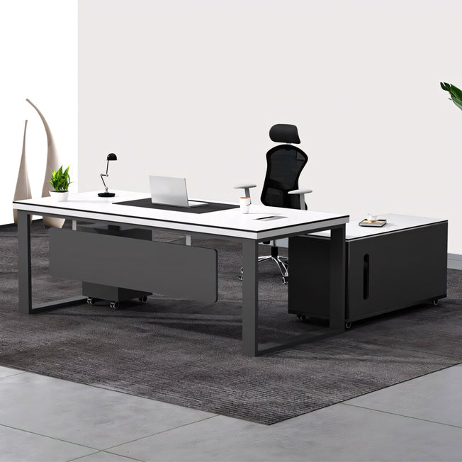 Big Computer Desk Executive Desk with Cabinet LBZ-2036 This executive desk features a modern, practical design with a blend of deep gray and wood tones. Its spacious, rectangular tabletop can neatly hold office documents and stationery, reflecting an...