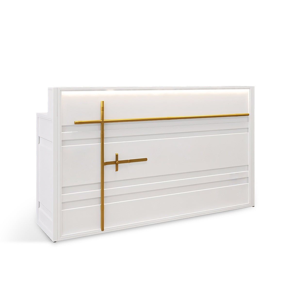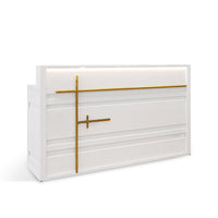 Like a classic tailored suit, our reception desk boasts a sleek, refined interior. Waterproof and moisture-resistant, it combines timeless elegance with lasting durability, ensuring it remains a stylish and reliable centerpiece for years.