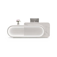 Still struggling to find a reception desk that combines beauty and functionality? This reception desk features a stylish and modern design with a grand and elegant appearance. It is shipped with one - piece installation, saving you time and effort. Equipped with built - in LED light strips, the soft light outlines the smooth contours of the reception desk, not only adding visual beauty but also creating a warm and professional atmosphere.