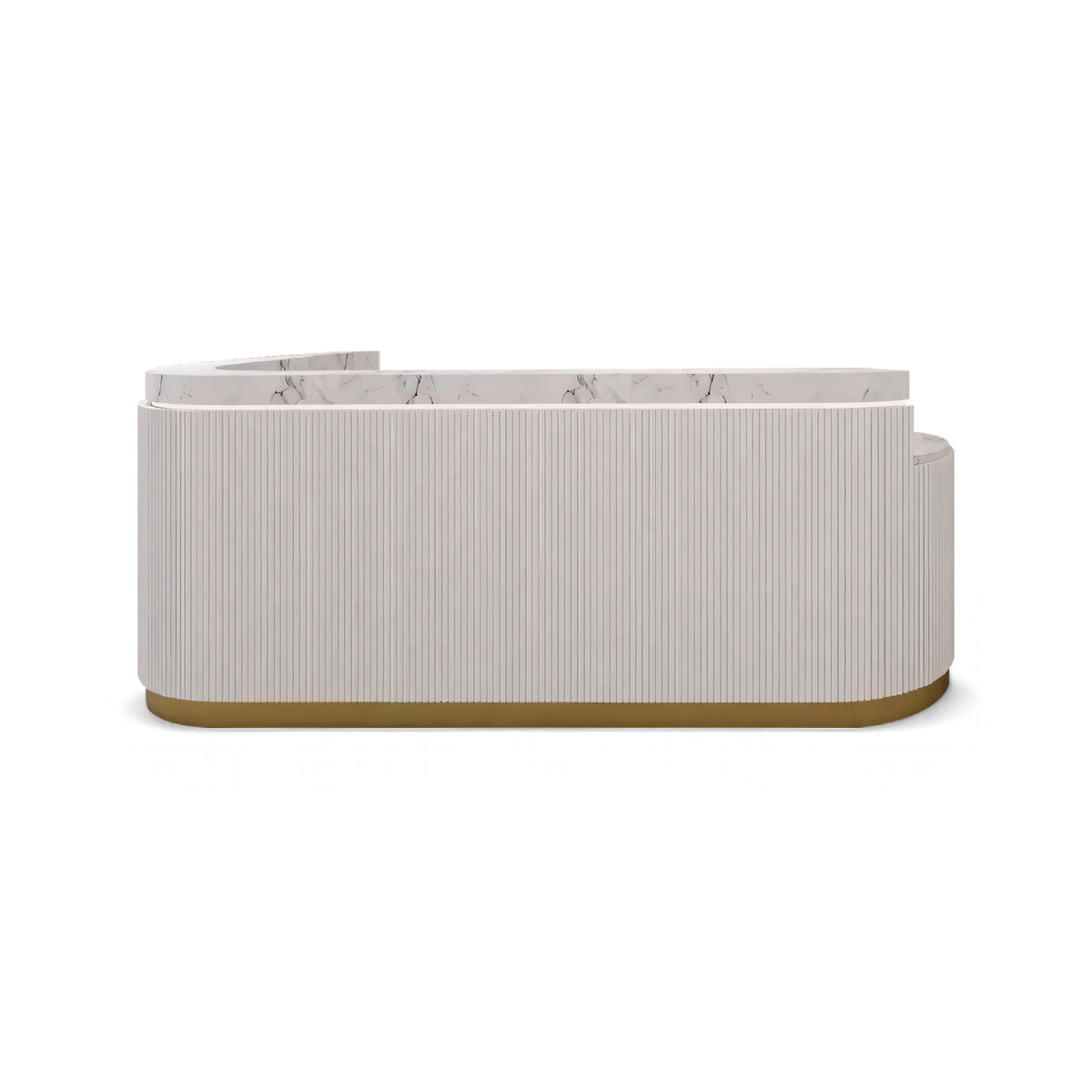 The modern and minimalist reception desk combines perfectly with the side cabinet. The smooth lines and soft lighting create a warm atmosphere. The beautiful and practical side cabinet provides ample storage space.