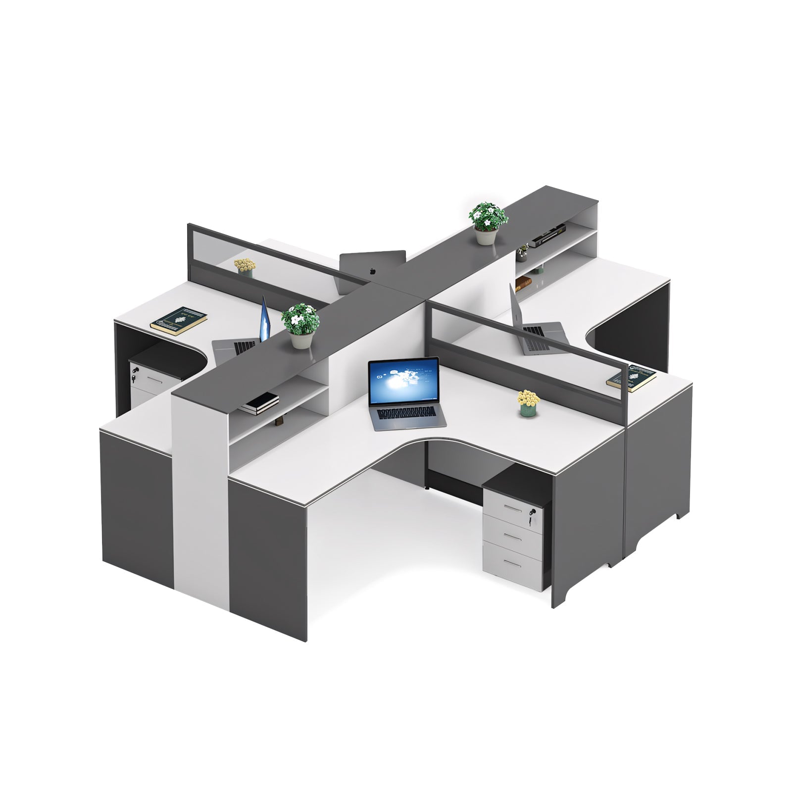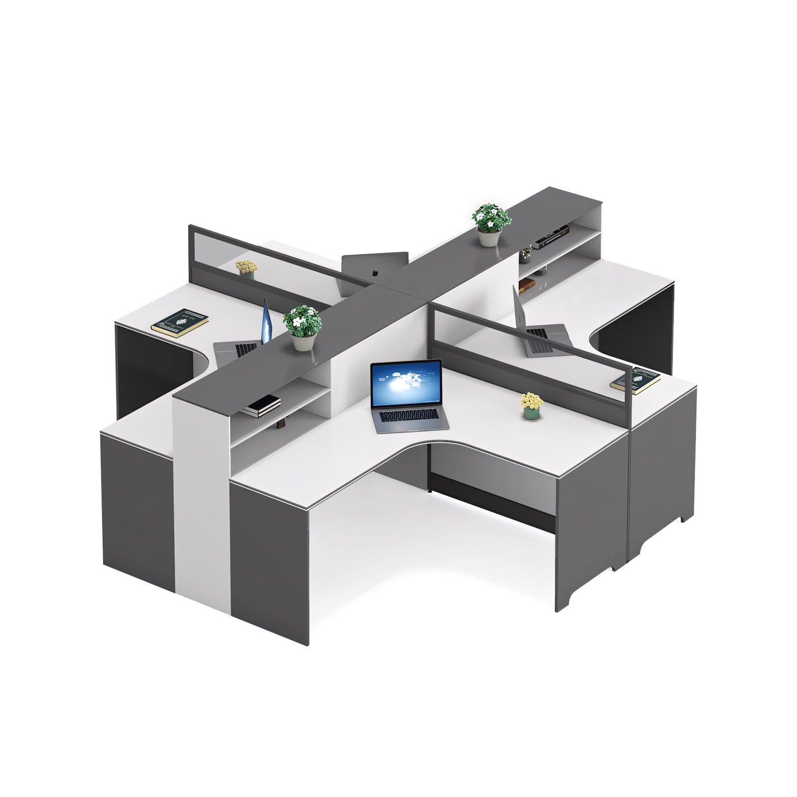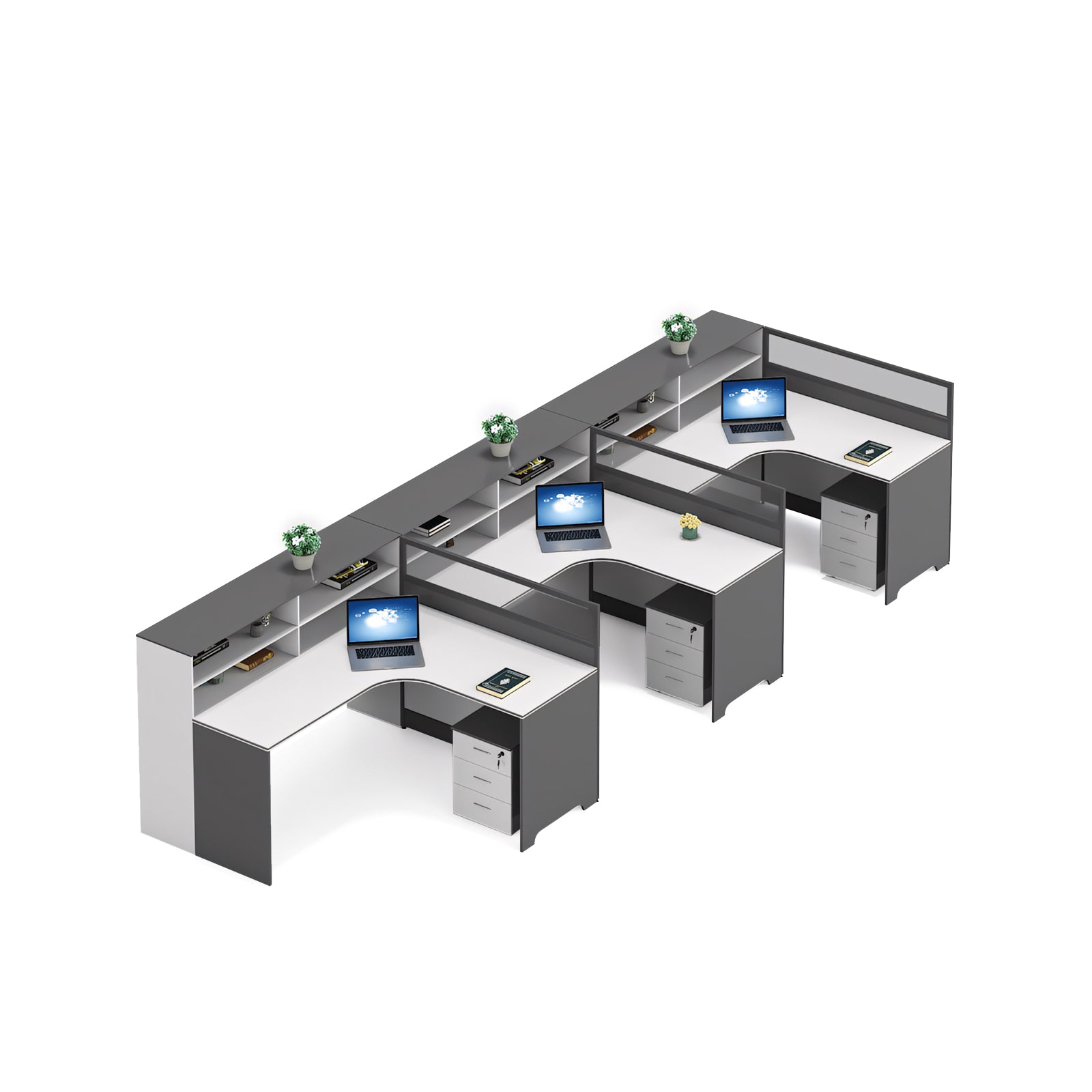 Modern Simple Office Desk And Chair Set With Screen Bookcase Partition YGZ-734