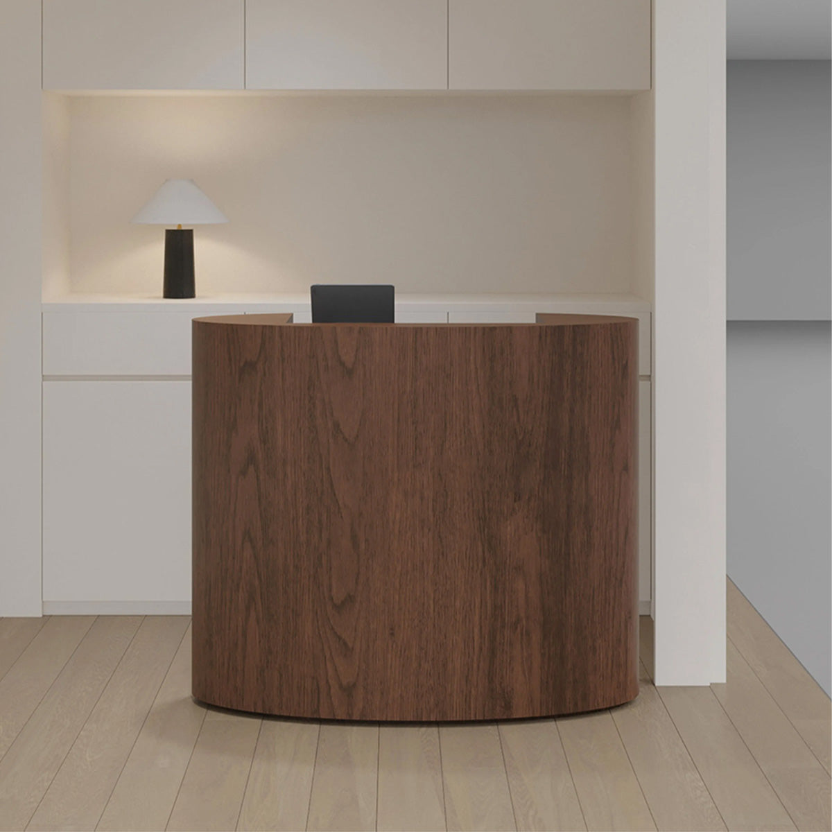 | The cashier reception desk is mainly crafed with Veneering MDF with Walnut Wood for stability and durability. With friendly material, it's weather and water resistant for long term use. Together with the oval tabletop, it is a good choice for welcoming visitors and guests. This minimalist reception table goes well with various store styles and shows your great taste. | |