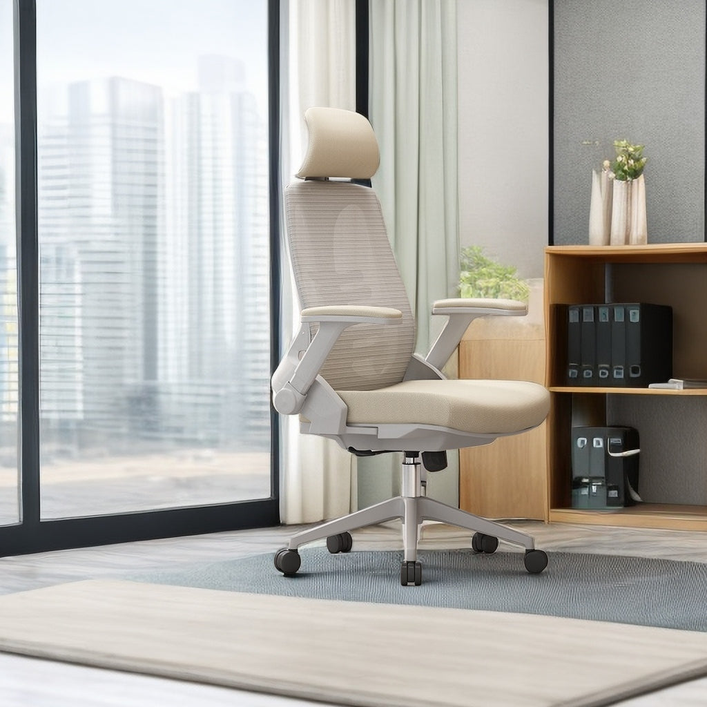 Stylish ergonomic office chair with headrest is the perfect addition to your workspace. This computer chair not only offers a contemporary and stylish design but also prioritizes your comfort and well-being. Designed with ergonomics in mind, this chair provides excellent lumbar support to reduce fatigue during long work hours. The adjustable headrest adds an extra layer of comfort, ensuring that your neck and shoulders are well-supported throughout the day. The chair's sleek and modern aesthetic effortlessly complements any office decor. Its high-quality construction ensures durability and longevity, making it a valuable investment for your workspace. The perfect blend of style and functionality with the stylish ergonomic office chair with Headrest enhances your productivity and comfort while adding a touch of elegance to your office environment.