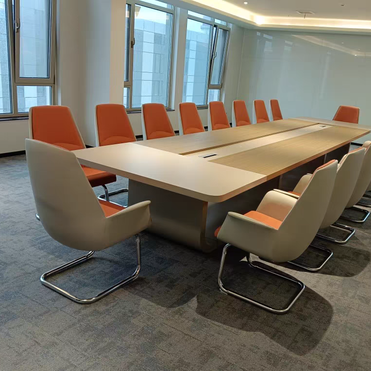Next, let’s introduce the selected items.First, the meeting table. Grey is a calming yet striking colour that fits perfectly in a meeting and business environment. Its tranquil tone eases tension, providing participants with a space where they can relax and focus on communication and discussion. The table is spacious enough to facilitate meetings and group work, helping to generate new ideas and facilitate decision-making.