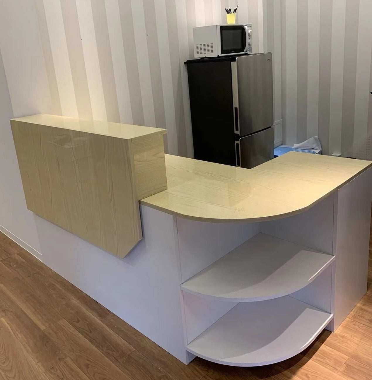 We received a request from a client who wanted to renovate their meeting room.To help their staff perform at their best, we selected specially designed items to bring a chic, modern grey tone to their meeting room. Grey tones create a calm atmosphere, and we strive to provide a quiet, focused environment.